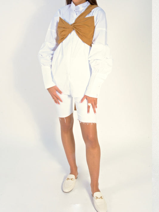 TIE UP RUFFLE SLEEVE SHIRT
