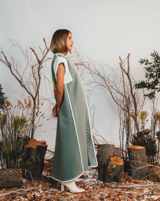QUILTED LEATHER PONCHO (GREEN)