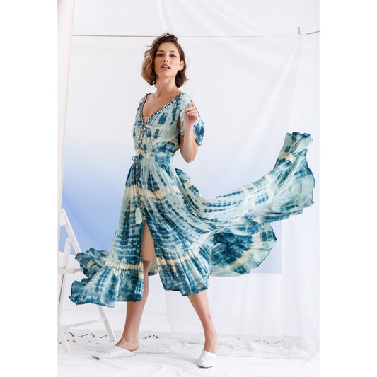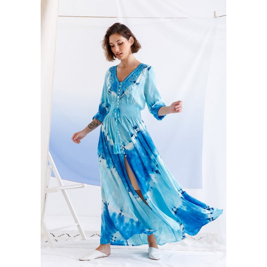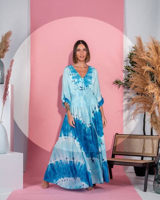 EMBELLISHED TIE DYE LONG SLEEVES (TURQUOISE)