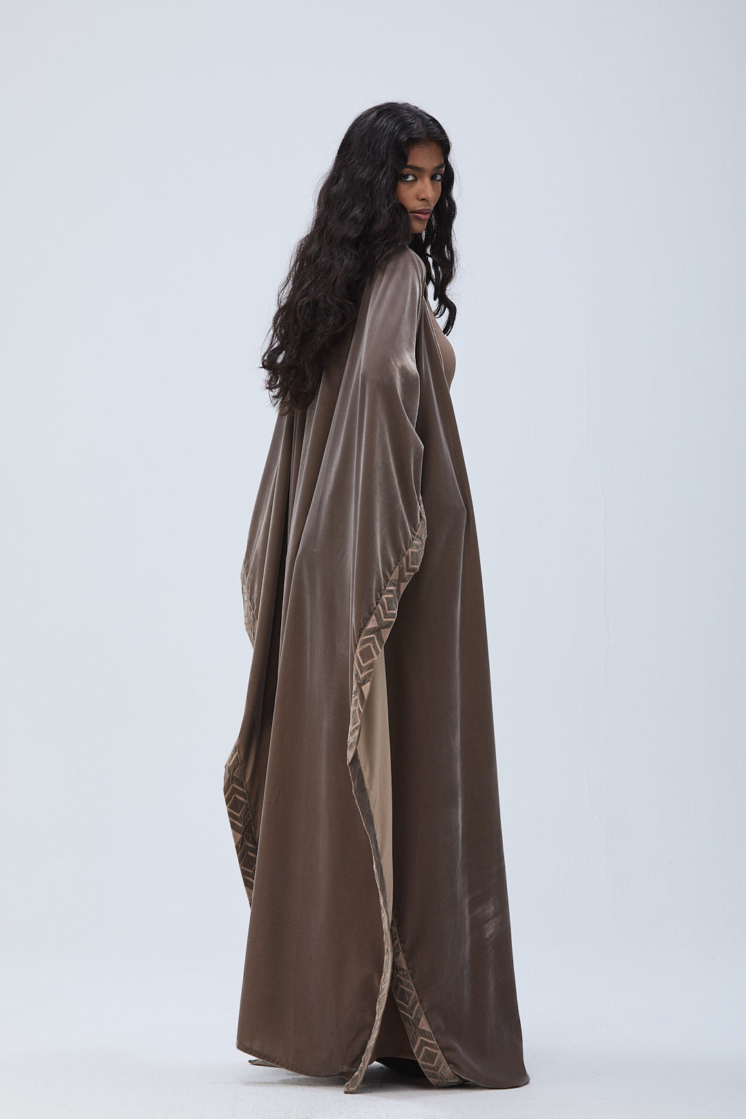 The Bisht is Hand-crafted from velvet with intricate embroidery detailing. Designed in a free size for a relaxed, oversized fit.