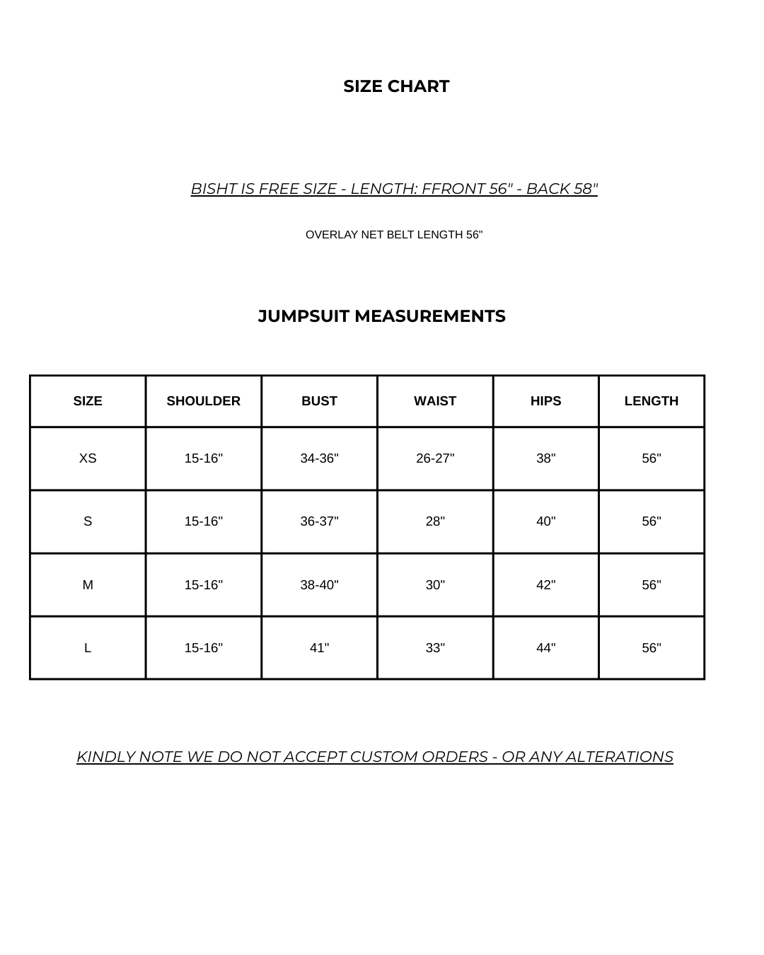 Jumpsuit comes in: XS-L