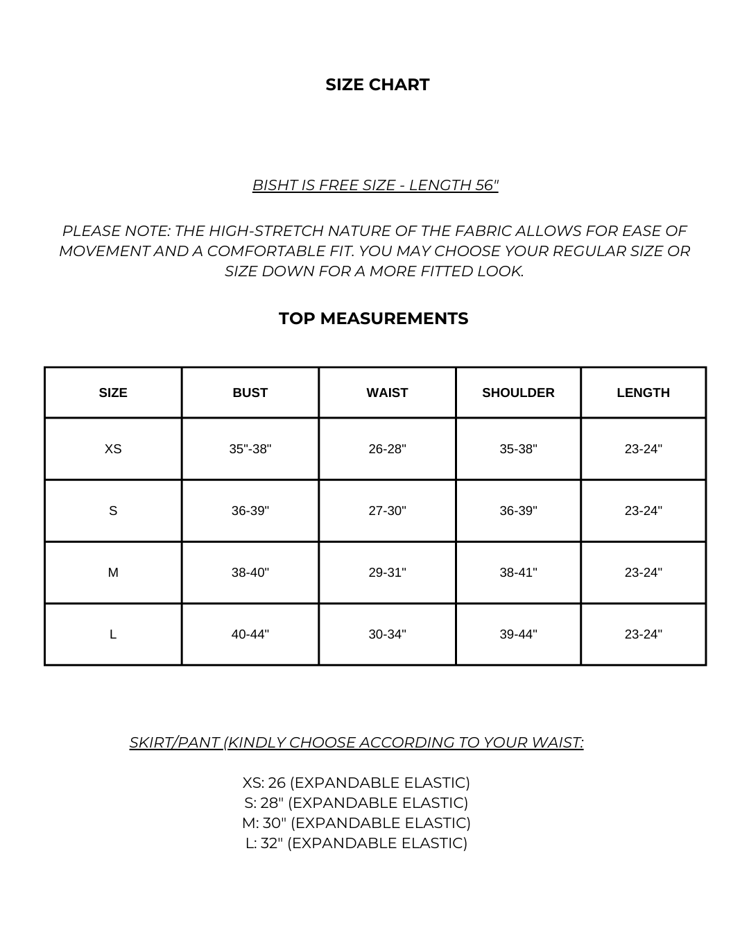 Top & skirt comes in sizes from XS - L