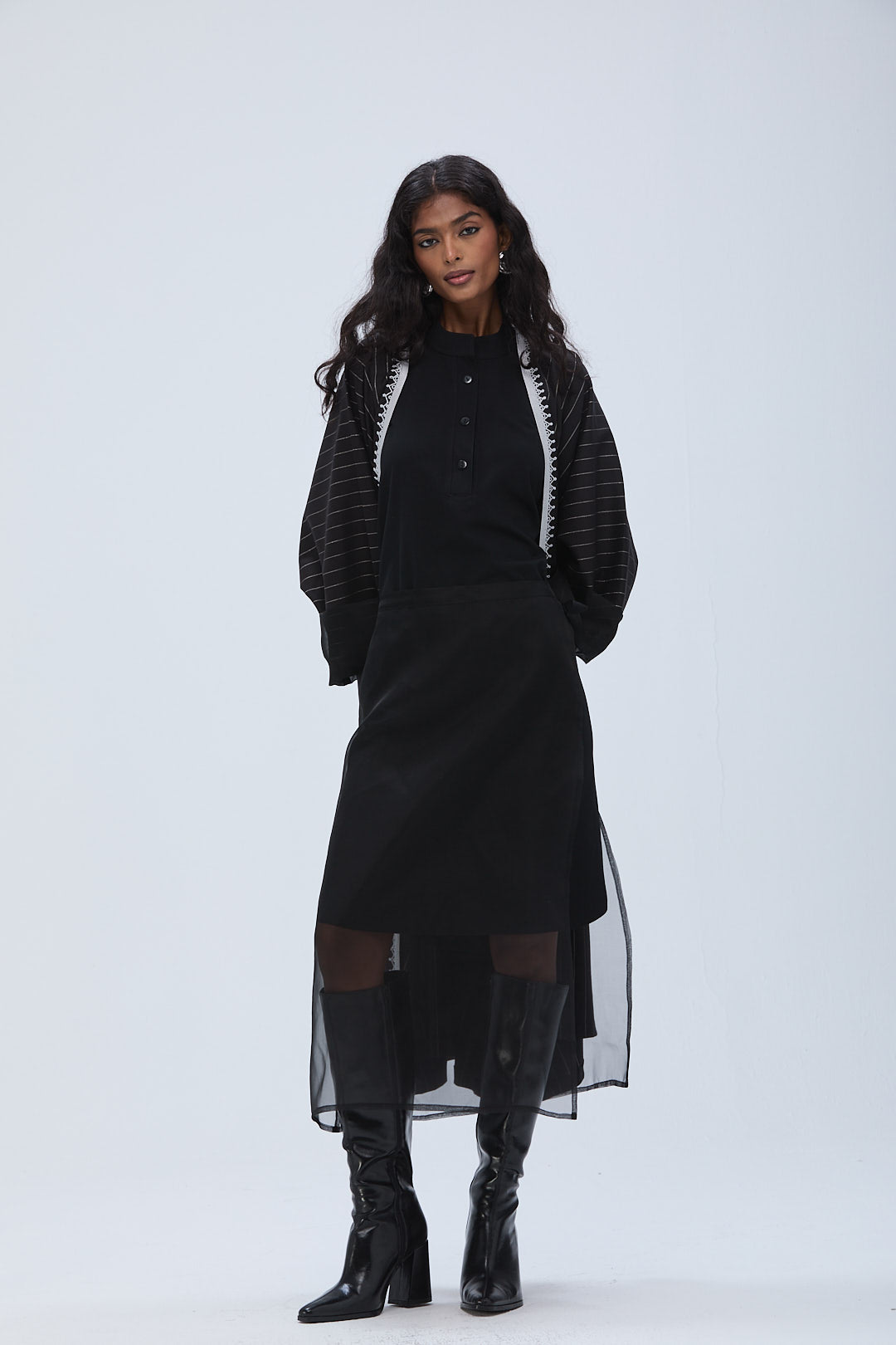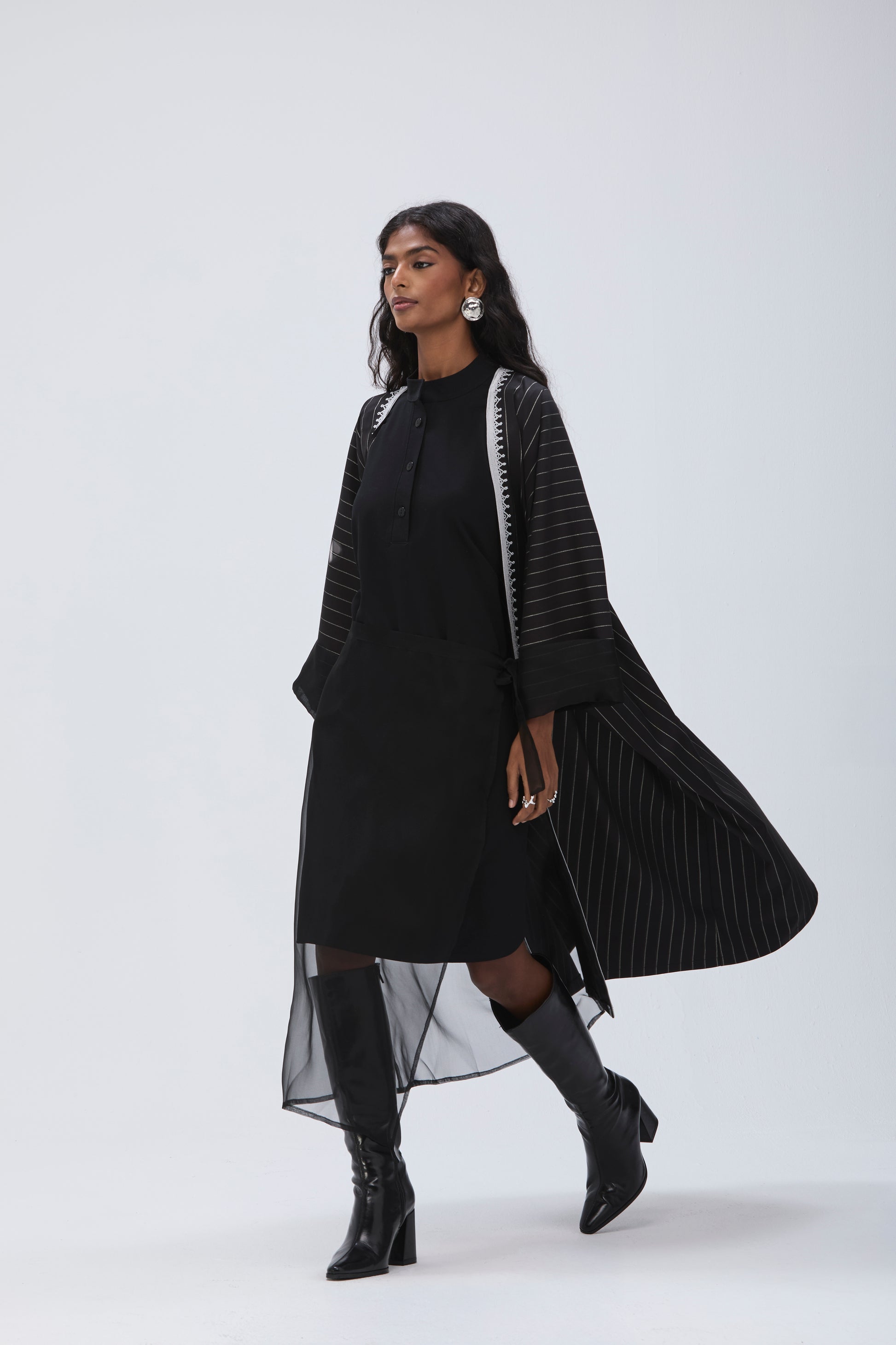 NOIRÉ is a 3 piece coord: Bisht, Dress & an overlay skirt