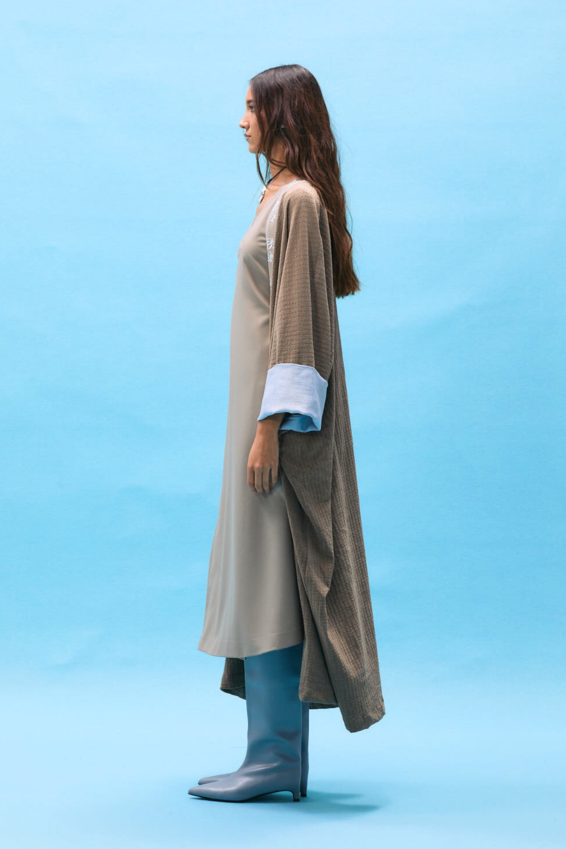 Paumés is a two-piece coordinated set consisting of a Bisht and Dress.