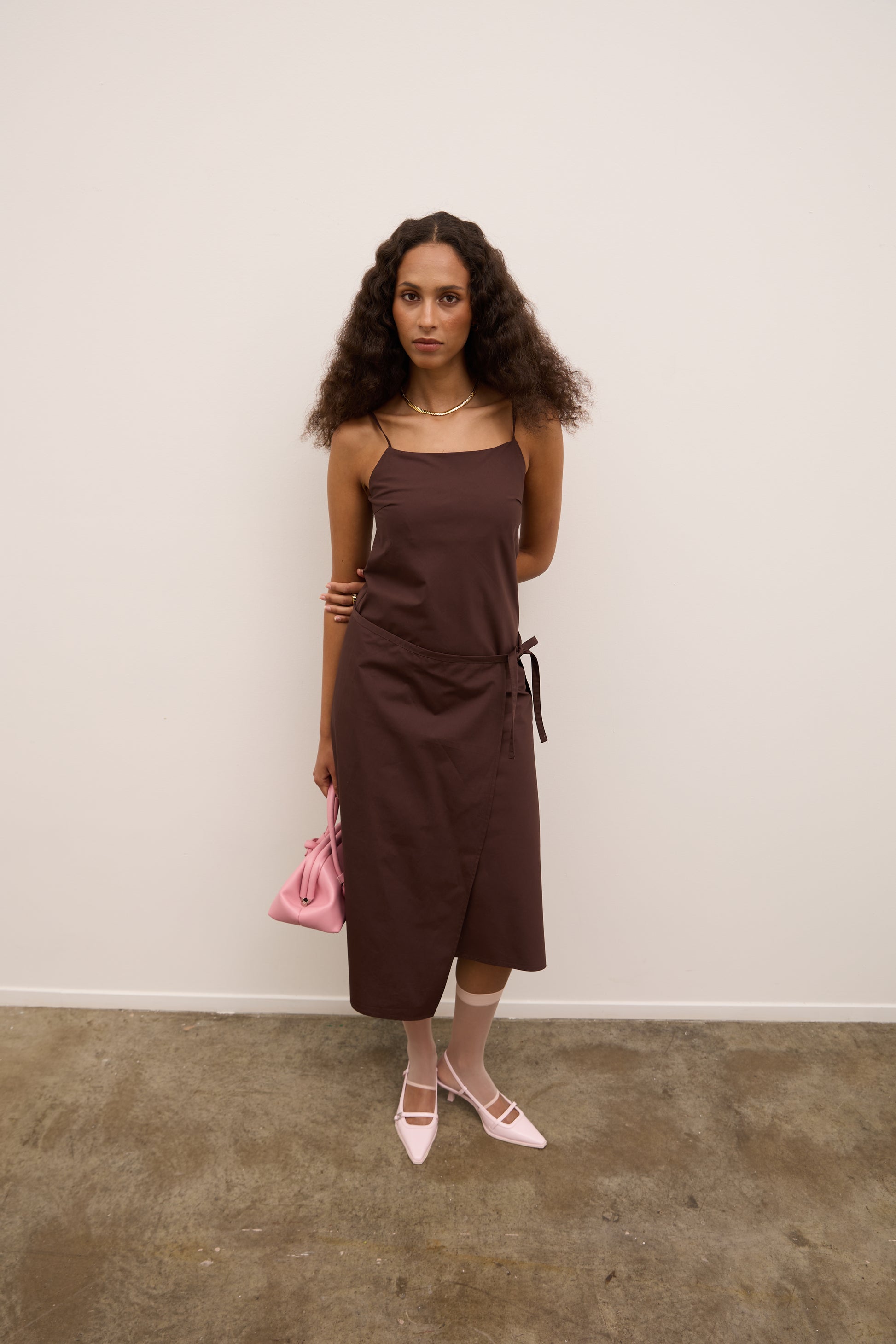 A matching coord inner dress that features a back zipper closure and a pleat through the front for a more a flattering fit. It has side ropes for a perfect waist fit. Designed to be long on the body, it crops below the knees. Fully lined.